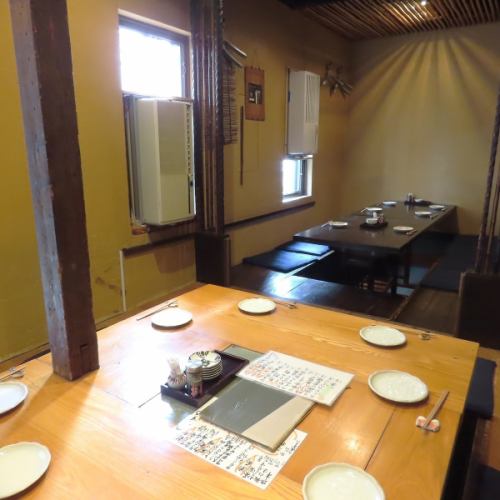 4名様の掘りごたつの席があり、結合可能なので6名様から8名様まで対応可能です。